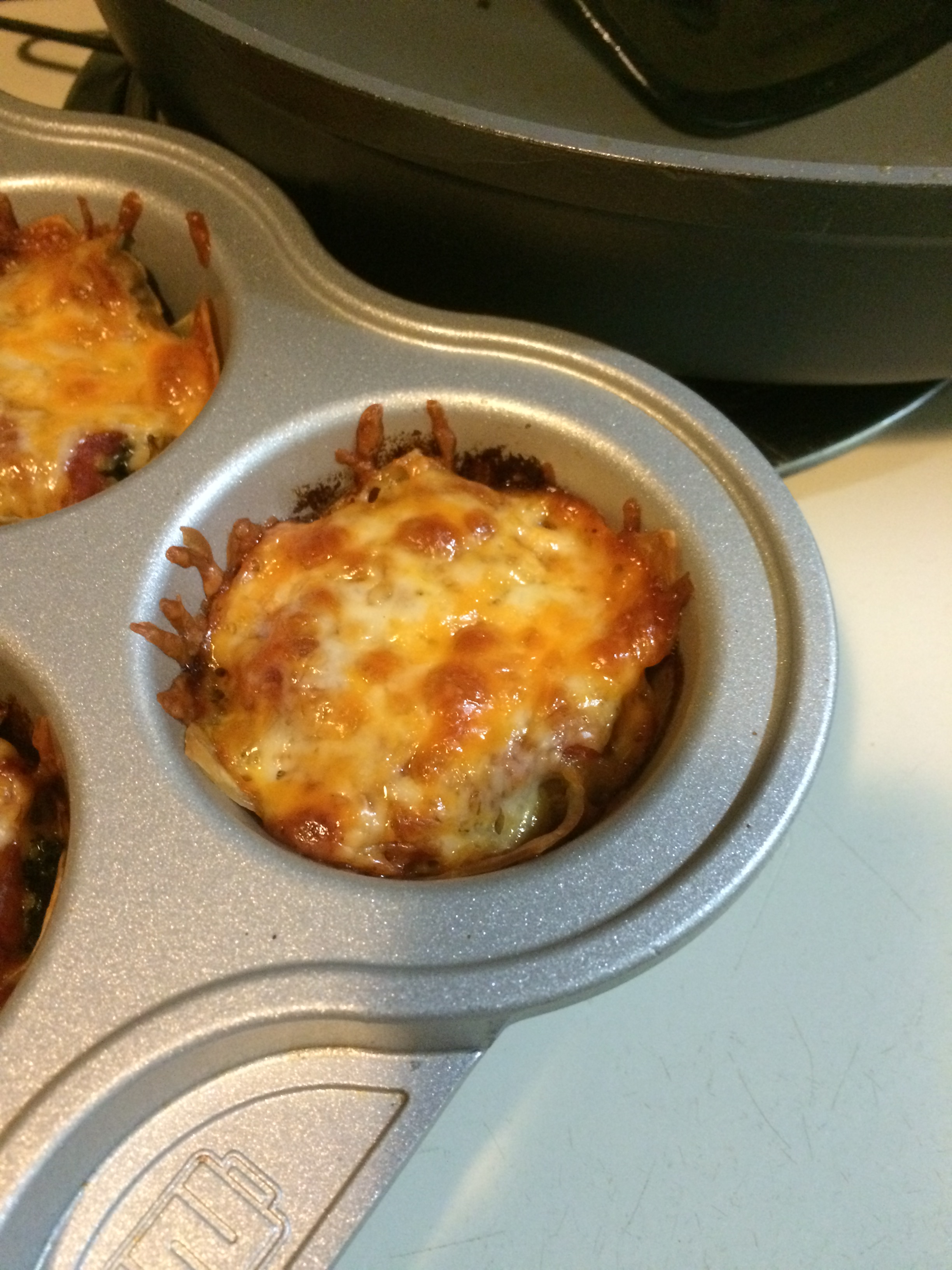 Now comes the assembly, this is the step where the aforementioned “Partner in crime” is useful. You will want to put one scoop of your meat and veg mixture in each wonton wrapper. Distribute anything you have left evenly amongst the wrappers. Place a spoonful of sauce on top of this mixture, then cover them in cheese.