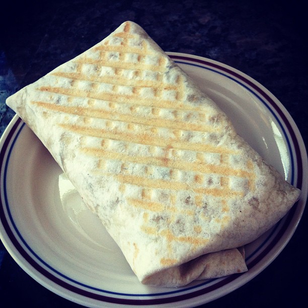 This dish is also a good way to make use of last night’s leftovers. There was some chicken from supper that had been BBQ’d so I diced it up. I noticed it was kind of dry so I used science to rectify the situation. If mushrooms release a fair amount of liquid while cooking, and chicken tends to absorb the flavours of what it’s cooked with, then combining them in the pan should do the trick. I cooked the veggies at a low heat, onions and peppers first, and once I saw some colour on the onion, tossed in the chicken, let them mingle just enough for the chicken to take on some of the pepper’s red tinge and tossed in the mushrooms, mixed them all around and let them sit for a bit, letting it all cook down. The result was very moist chicken, and somewhere a Science teacher, who I told I’d never use anything he taught me, smiled to himself.